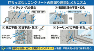 コンクリートからの雨漏りについてはこちらの記事で詳しく解説しています。↓