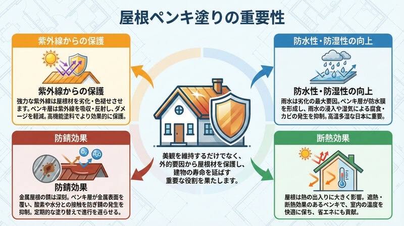 屋根のペンキ塗りは、家の美観を保つだけでなく、屋根材を保護し、耐久性を高める重要な作業です。この記事では、屋根のペンキ塗りに必要な準備から選び方、施工方法、メンテナンスに至るまでを詳しく解説します。 屋根塗装の重要性とDIYのメリット・デメ...