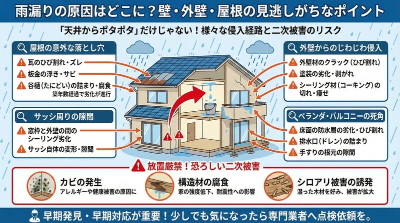 雨漏りと壁・外壁の原因とは?屋根・外壁塗装による修理リフォーム方法を解説【2026年版】