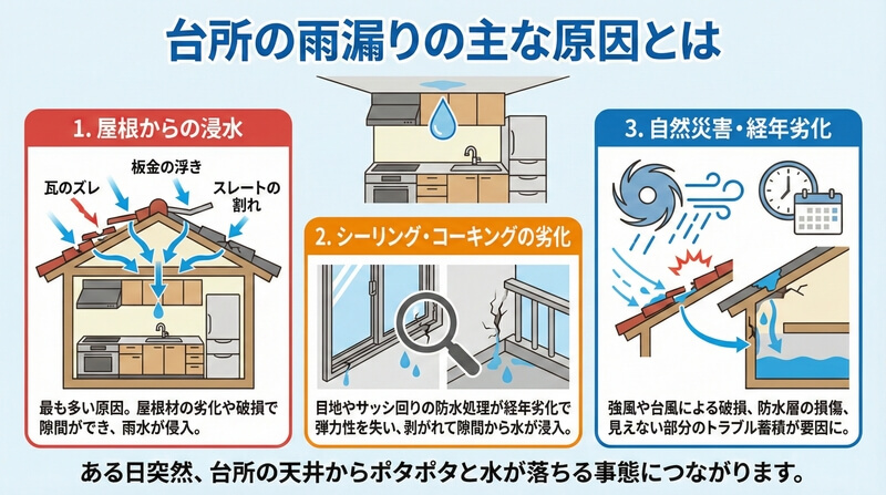 台所で雨漏り!?主な原因と対策・修理について【2026年版】
