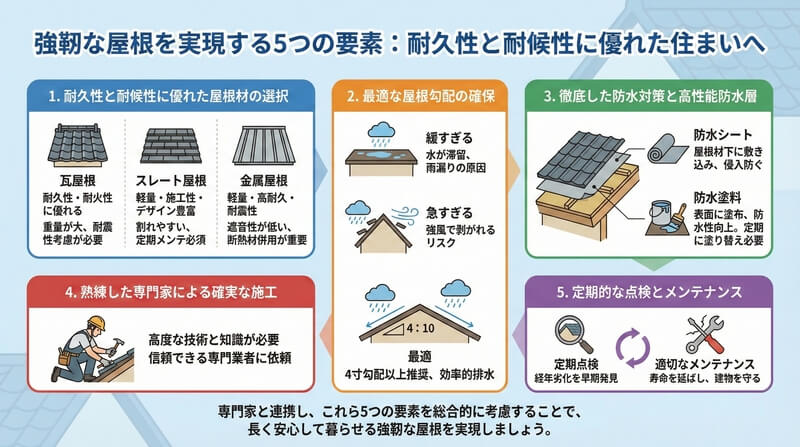 雨漏りを防ぐ強い屋根とは?台風や地震に耐える材の種類と形状の特徴を解説【2026年版】