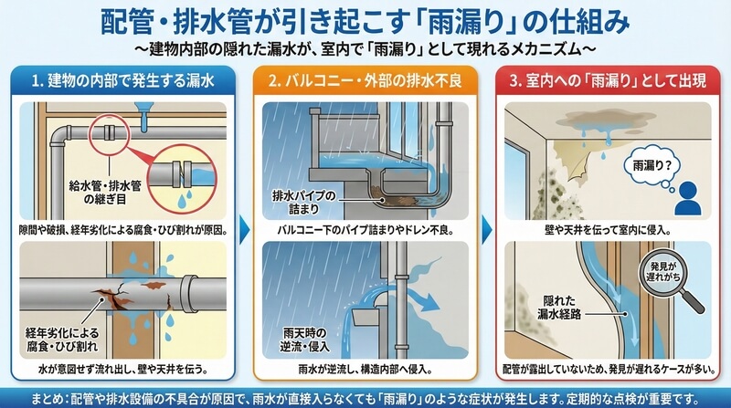 雨漏りの原因は配管や排水管の見落としかも?屋根以外の見えにくい原因と修理・対策を徹底解説【2026年版】