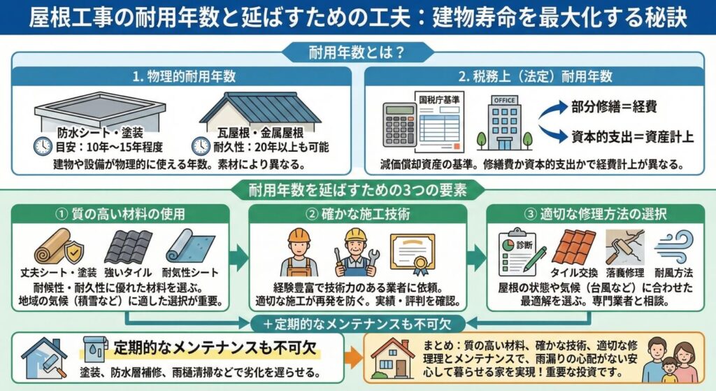 雨漏り修理工事の耐用年数は何年?屋根の修繕費や減価償却、保証内容と費用の考え方を詳しく解説【2026年版】