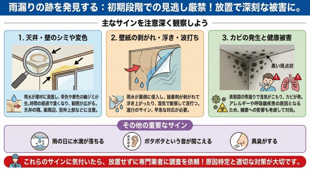 雨漏りの跡を発見したときの正しい対処法|修理までの流れをわかりやすく解説【2026年版】