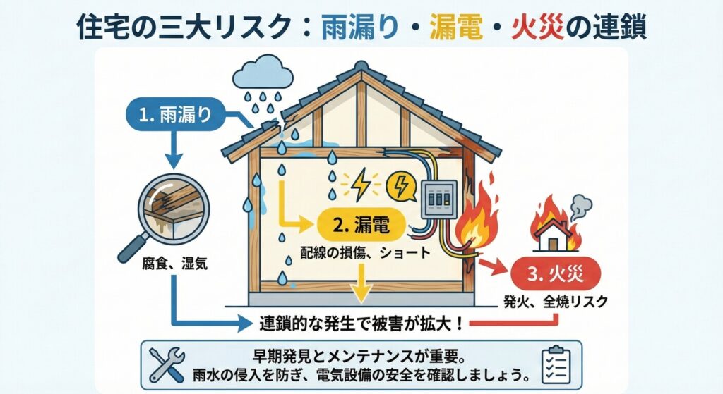 雨漏り・漏電・火災は住宅の三大リスク!原因と予防策を徹底解説【2026年版】
