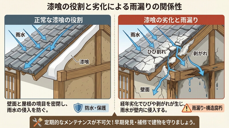 漆喰劣化で起こる雨漏り原因と対処法【2026年版】