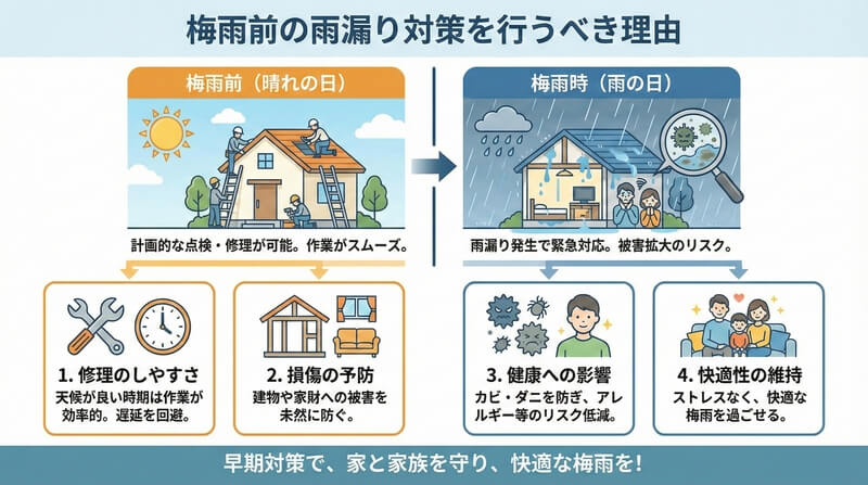 梅雨前の雨漏り点検で安心リフォーム!屋根・外壁塗装の時期と工事のポイントを解説【2026年版】