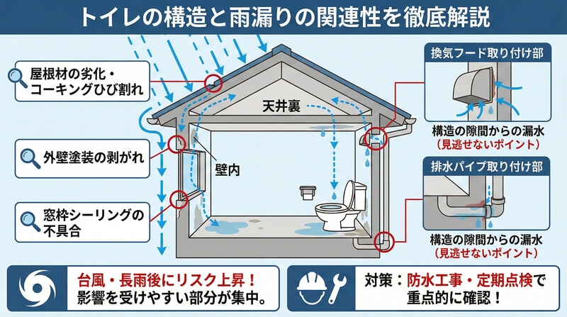 トイレでの雨漏りの原因は?!構造の関係と放置のリスクについて解説【2026年版】