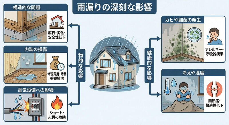 雨漏りが放置されるとどのような被害が出るのか?影響と対処法について【2026年版】