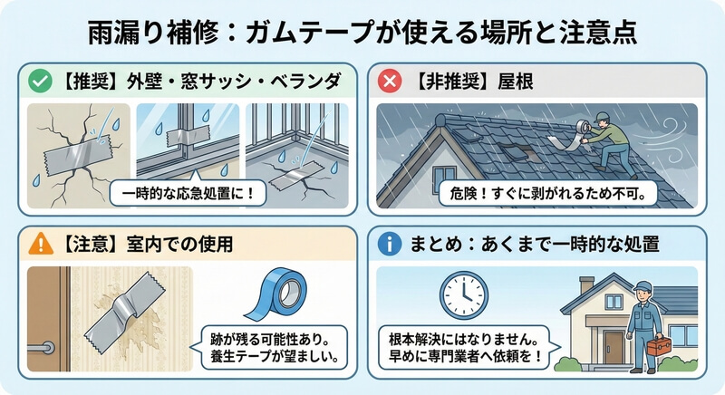 ガムテープは雨漏りの応急処置に使えるのか?屋根屋さんが解説【2026年版】