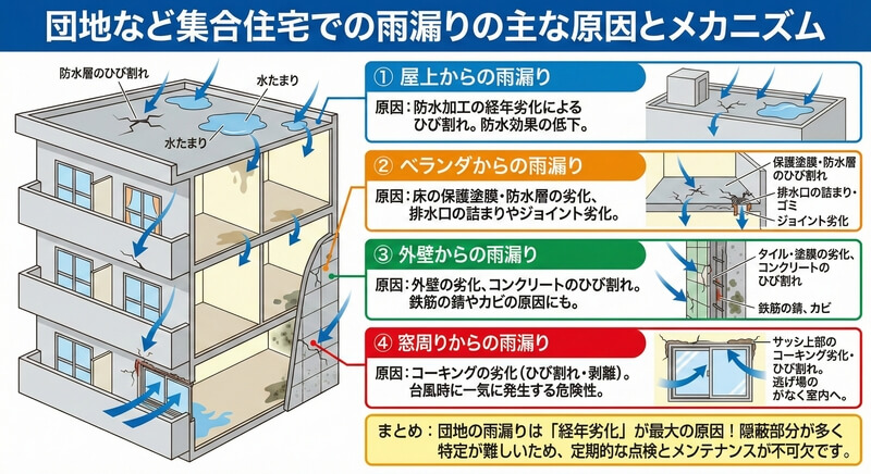 団地での雨漏りは劣化が原因?集合住宅で発生する漏水について解説【2026年版】