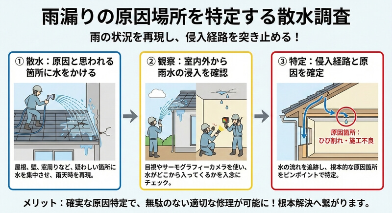 散水調査で雨漏りの原因を特定!業者依頼時の調査費用と注意点も徹底解説【2026年版】