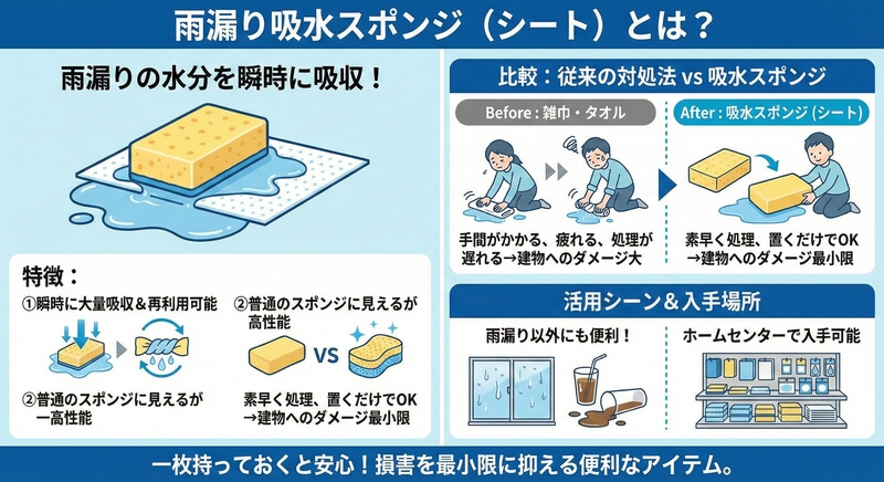 ニトリや100均の吸水スポンジ・シートで雨漏り対策!応急処置の限界とプロの修理