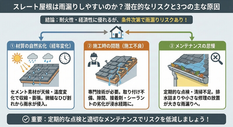 スレート屋根の雨漏り原因!寿命とメリット・デメリット、修理費用について解説【2026年版】