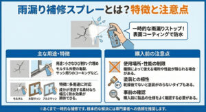 防水スプレーを使った雨漏りの予防についてはこちらの記事で詳しく解説しています。↓