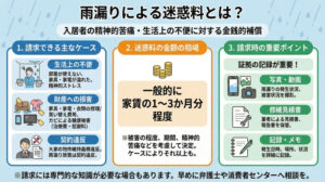 このような場合、民法上は原因者が修繕や賠償を行う義務を負うとされており、故意または重大な過失があった場合には迷惑料のような損害賠償が認められるケースもあります。反対に、自然災害による不可抗力であった場合には、賠償責任が否定されることもあり、その判断は難しいものとなります。