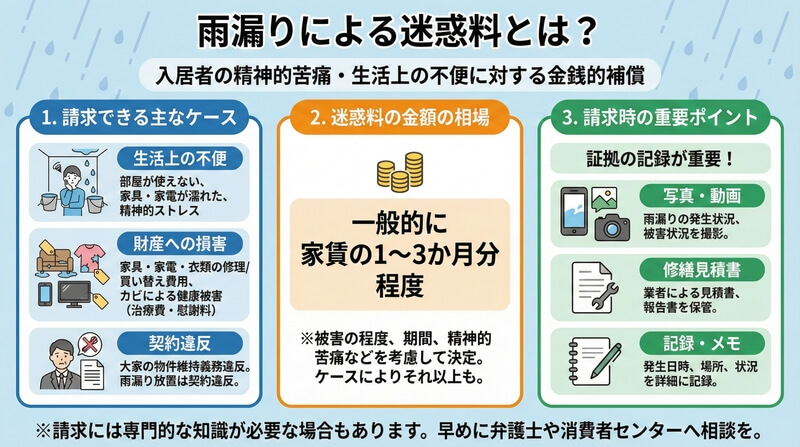 雨漏りによる被害が賃貸住宅で発生した場合、管理会社やオーナー、入居者の間での責任問題が生じることがあります。たとえば、上の階からの雨水の漏水で下の階の部屋に被害が及んだ場合、損害賠償の請求対象が誰になるのかが争点となります。