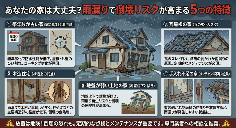 雨漏りで倒壊!?危険性が高い住宅の特徴を解説【2026年版】
