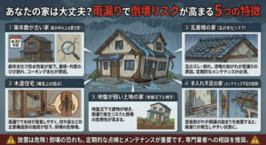 雨漏りによる倒壊についてはこちらの記事で詳しく解説しています。↓