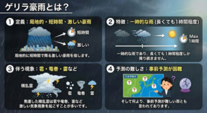 ゲリラ豪雨についてはこちらの記事で詳しく解説しています。↓
