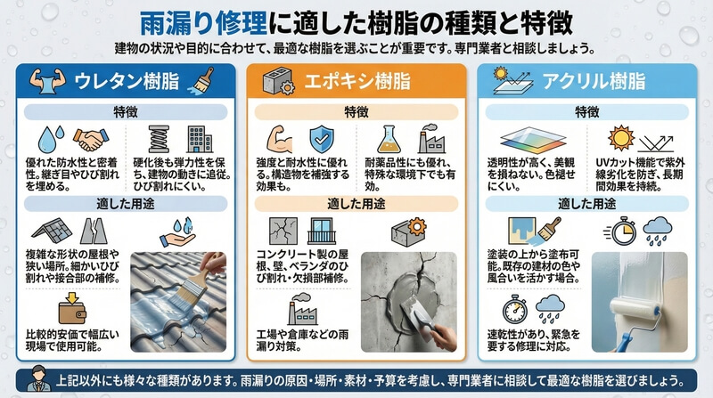 雨漏り修理に適した樹脂の種類