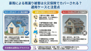 雷による雨漏りは、突発的な自然災害による損害であるため、多くの場合火災保険の適用対象となります。ただし、申請には条件や注意点があり、迅速かつ正確な対応が求められます。