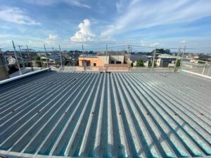 - 金属屋根: スチール、アルミニウム、亜鉛メッキ鋼などがあり、耐久性が高く、メンテナンスが少なく済むため、工業用途に広く利用されます。また、反射性が高い材料を選ぶことで夏場の熱を反射し、冷却コストを抑えることができます。