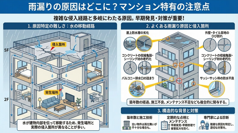 雨漏りの原因はどこに?マンション特有の注意点