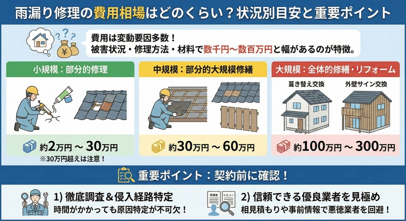 雨漏り修理の費用相場を箇所別に解説