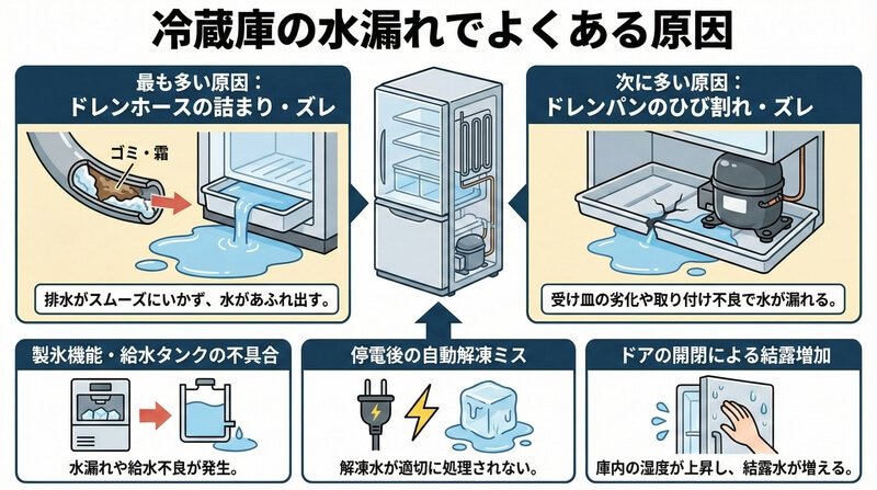 冷蔵庫の水漏れでよくある原因