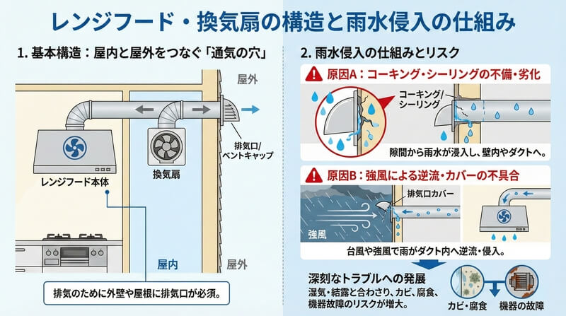 レンジフードや換気扇の構造と雨水侵入の仕組み