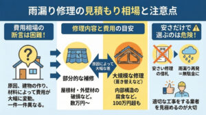 施工後に万が一雨漏りが再発したときの保証期間や対応内容も確認しておきましょう。また、見積もり内容に不明瞭な項目がないか、丁寧な説明をしてくれる業者は信頼できます。