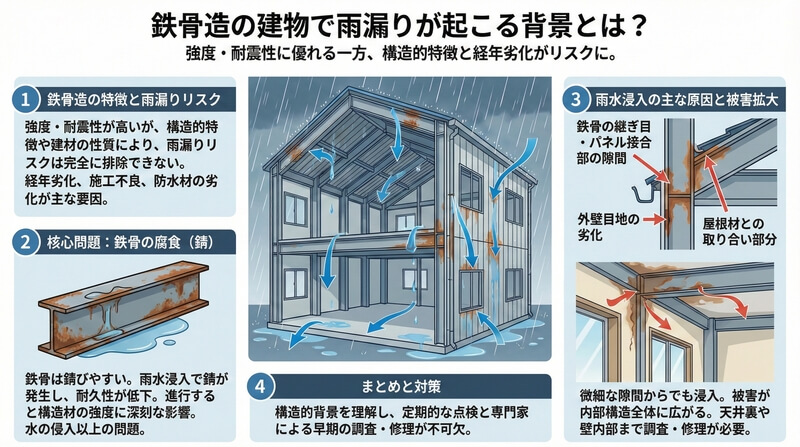 鉄骨造の建物に多い雨漏りの原因とは?修理と工事による対策法を解説【2026年版】