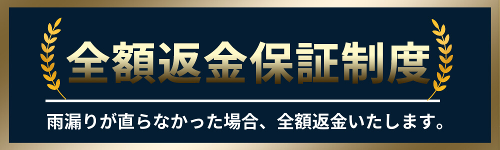 屋根雨漏りのお医者さんでは、雨漏り調査から工事後のアフターフォローまで一貫体制で管理しているため、施工した箇所に万が一不具合があった場合、再度無償で補修工事を行い、それでも雨漏りを直せなかった場合には全額返金の対応をしております。